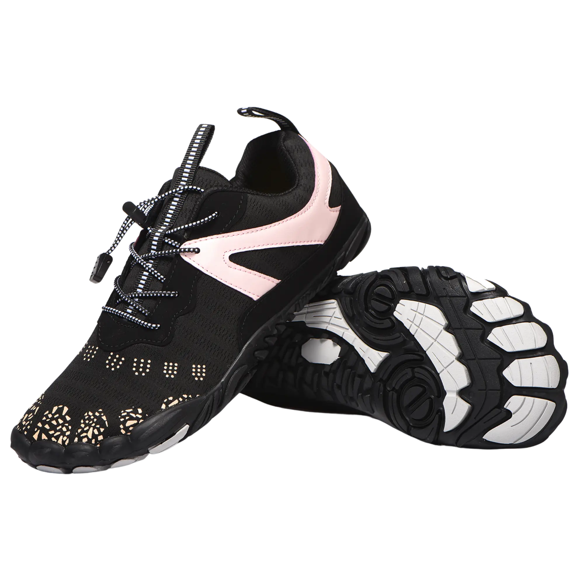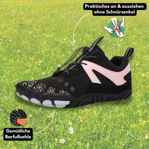 Der Begriff "Barfußschuh" bezieht sich darauf, dass der Schuh durch seine breite Form und das leichte, flexible Material ein Laufgefühl vermittelt, das dem Barfußlaufen nahe kommt.