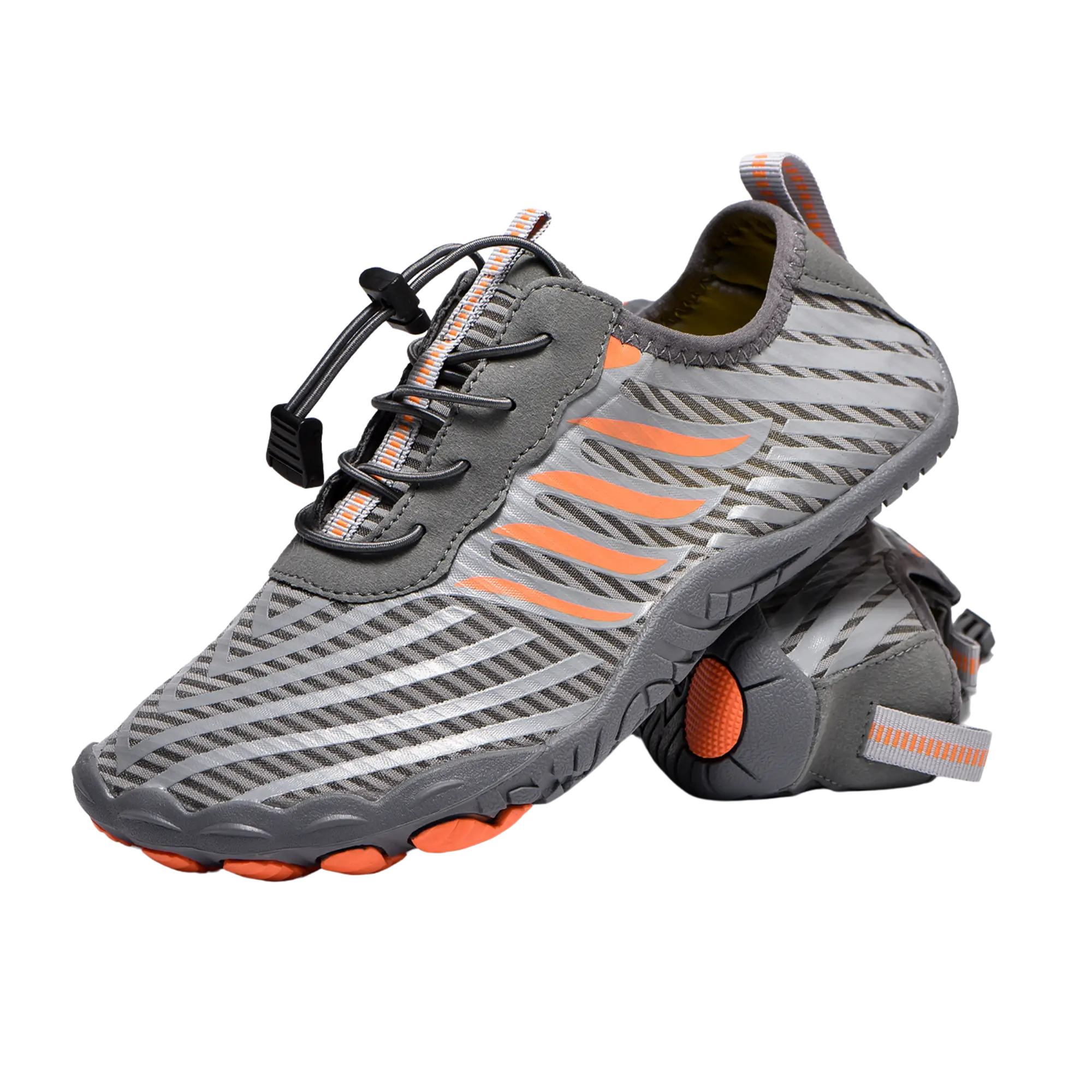Der Begriff "Barfußschuh" bezieht sich darauf, dass der Schuh durch seine breite Form und das leichte, flexible Material ein Laufgefühl vermittelt, das dem Barfußlaufen nahe kommt.