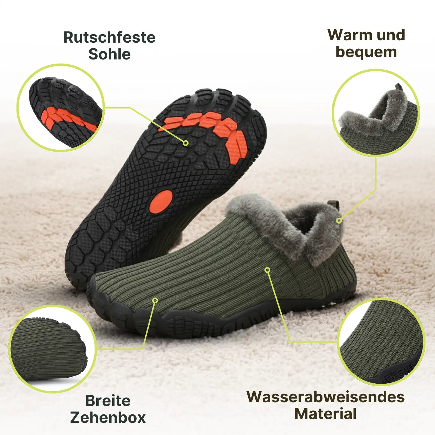 Hommies™ – Warme Barfuß-Hausschuhe mit Fleecefutter und rutschfester Sohle